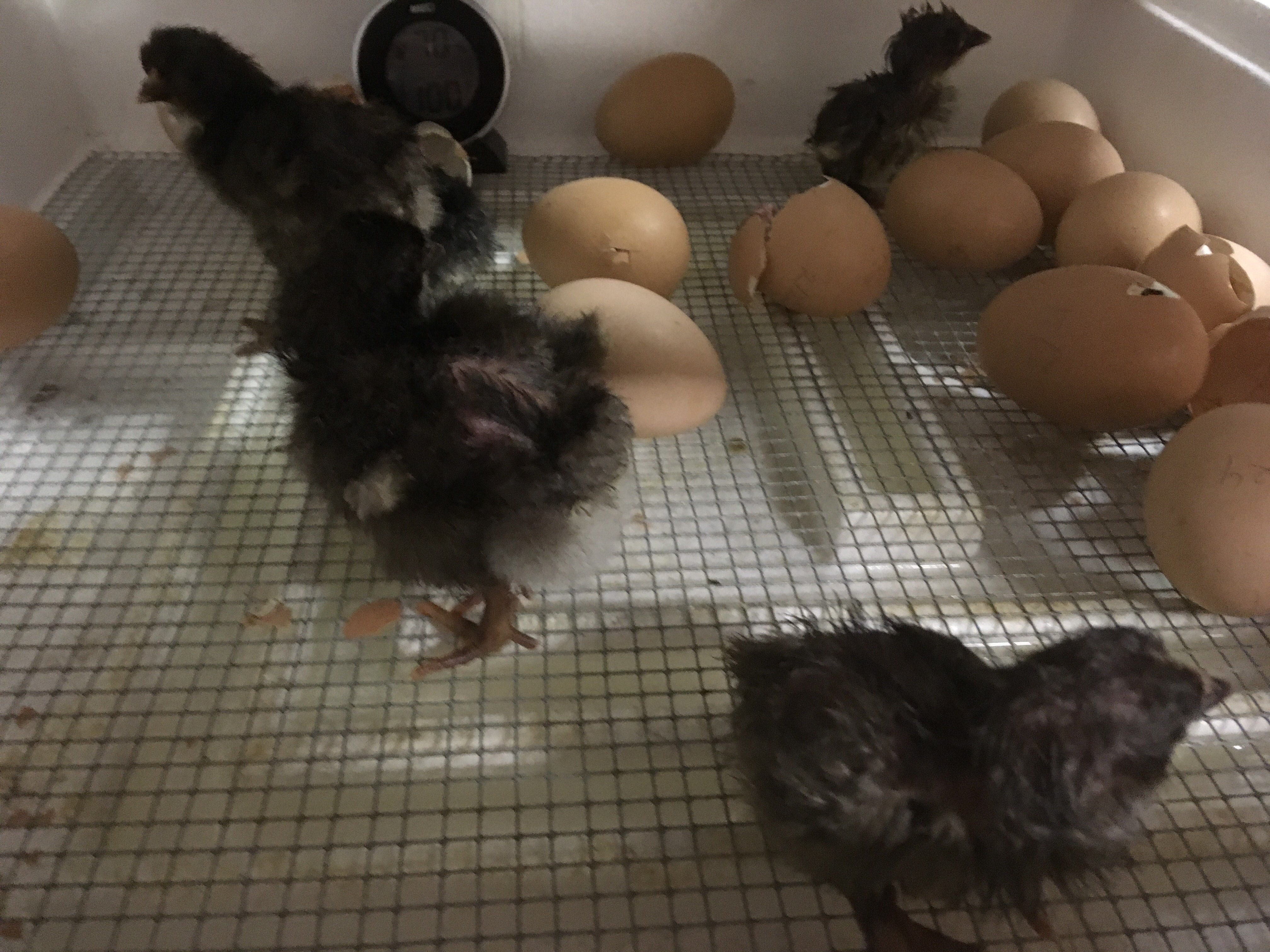 The over all process of hatching can take quite a while, but once that baby chick gets to the end where it’s cracking the egg open it can go pretty fast. Thankfully we checked at the right time to see one hatching.