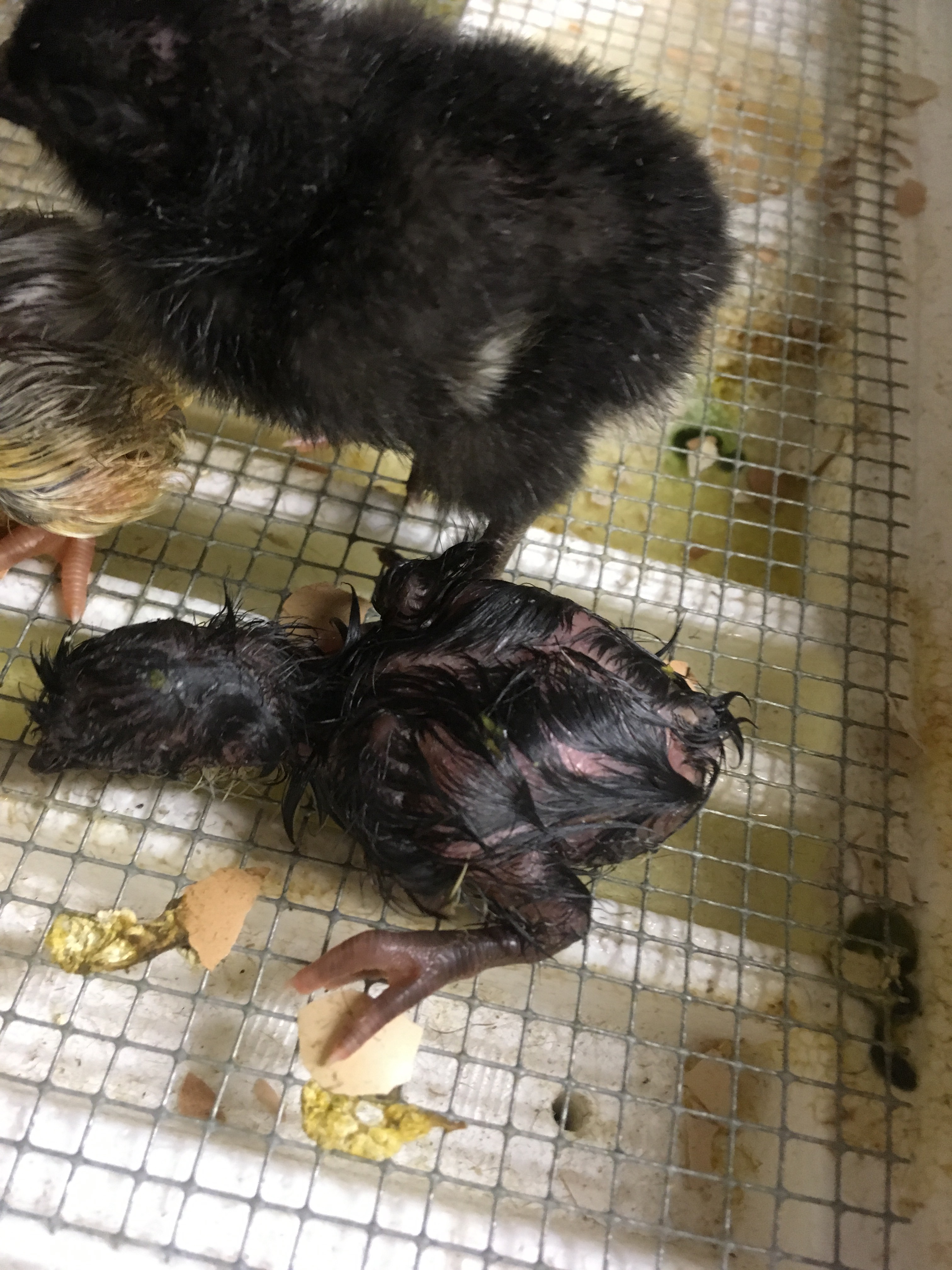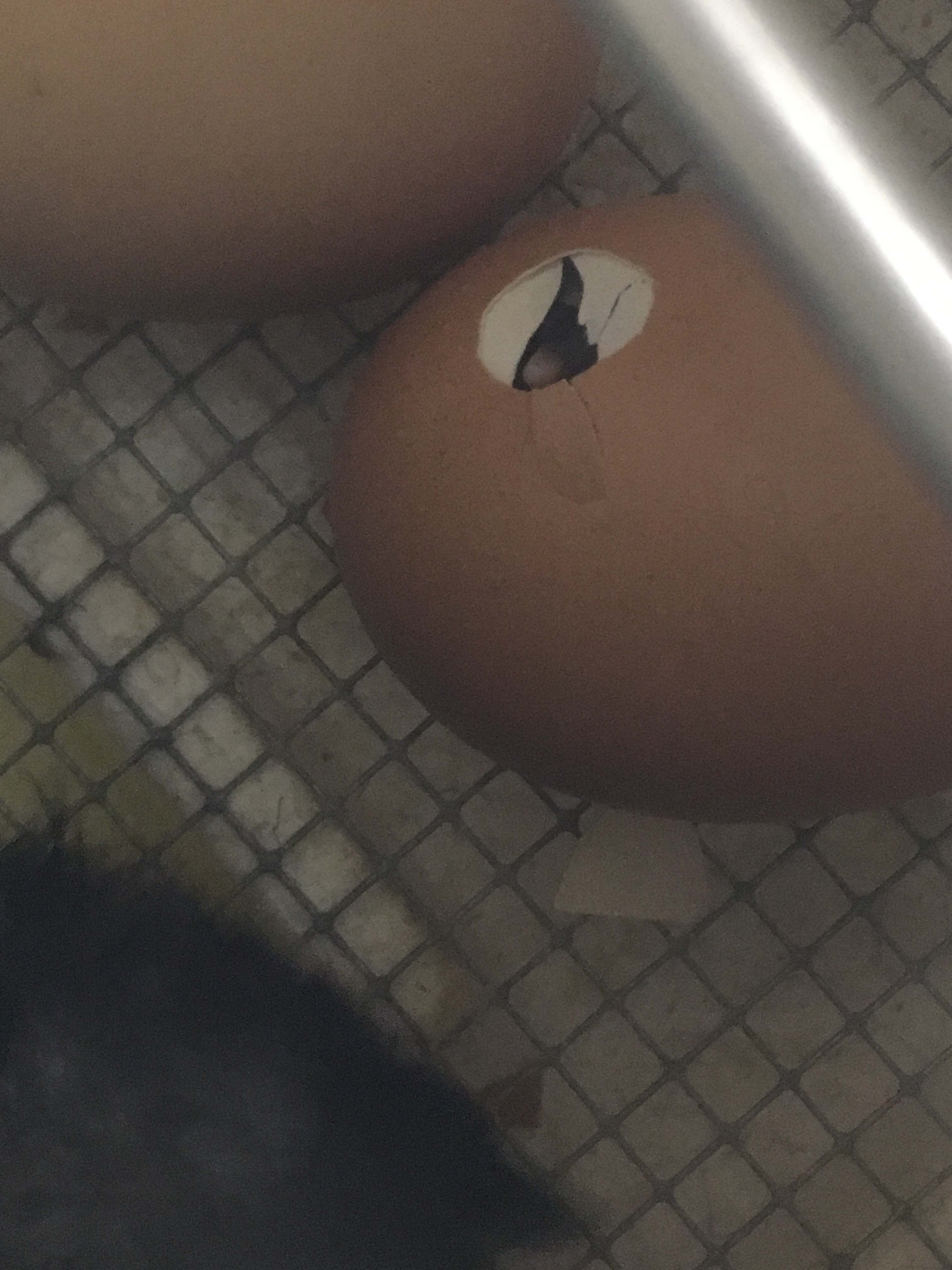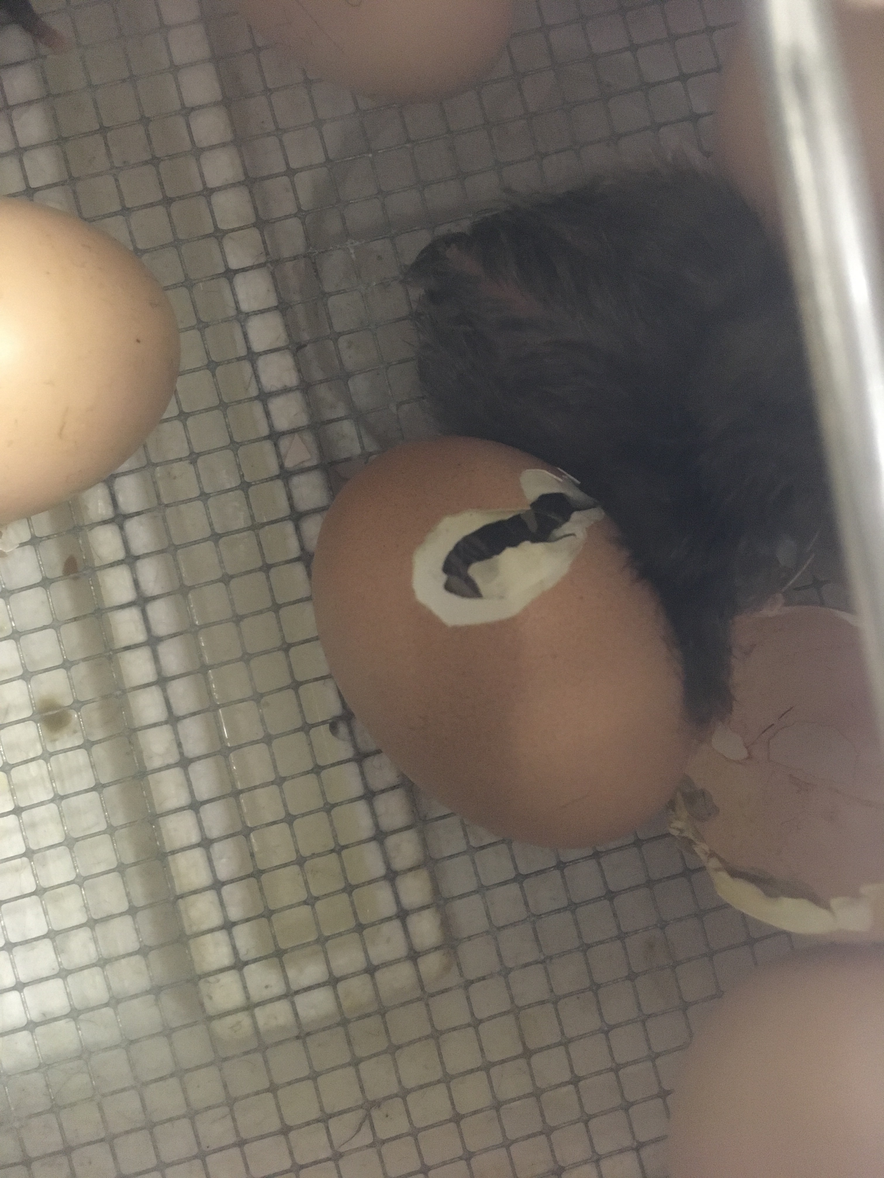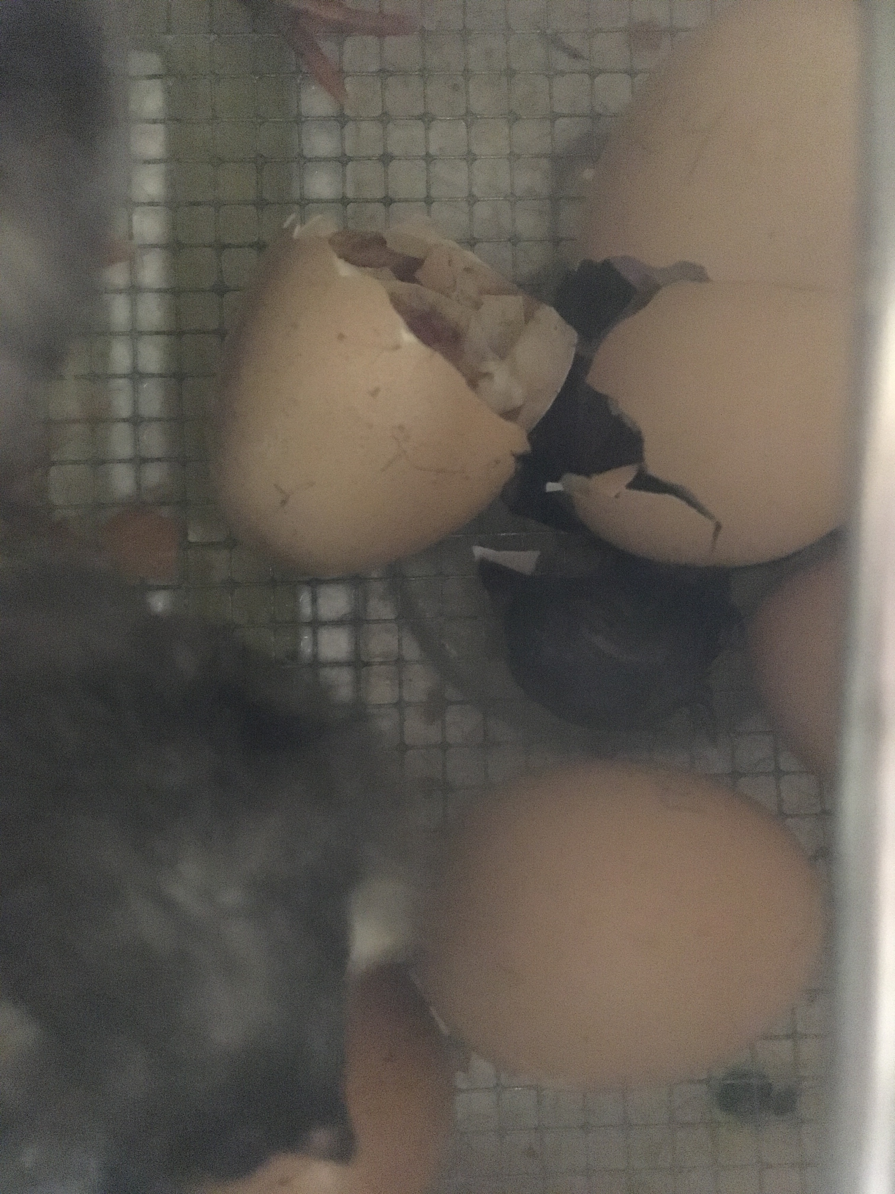 Hatch day wasn’t until the next day, but clearly two chicks were a little impatient.